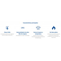 Sensor de gases: Incluye dos sensores de seguridad que desconectan el calentador automáticamente en caso de acumulación de humo o sobrecalentamiento del agua.
