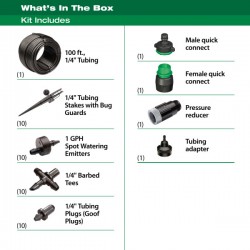 - Kit completo listo para usar: incluye todos los elementos necesarios para instalar un sistema de riego por goteo eficiente.