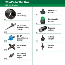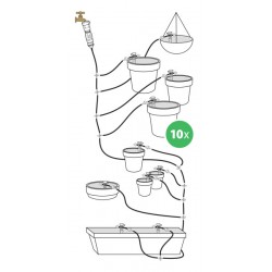 Perfecto para balcones, terrazas y pequeños jardines urbanos, este kit incluye todos los componentes necesarios para crear un sistema de riego completo, adaptable y de bajo consumo.